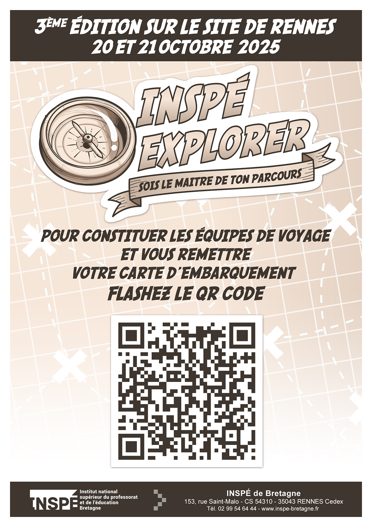Communication Du 20 octobre 2025 au 21 octobre 2025INSPÉ Explorer - 3ème édition sur le site de RennesPublié le 25/09/2025 Cliquer ici ou sur l’image pour en savoir plus Partager cette page sur Partager sur FacebookPartager sur LinkedIn Revenir aux actualités & événements